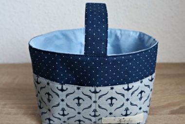 Stoffkörbchen mit Taschen – Größe S – Anker-Streifen